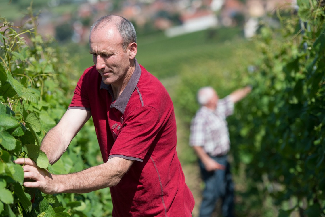 Dès la sortie des bourgeons nous retirons aux pieds des ceps les gourmands inutiles et indésirables, et sélectionnons dans la tête des ceps les pousses principales qui seront utiles lors de la prochaine taille d’hiver.